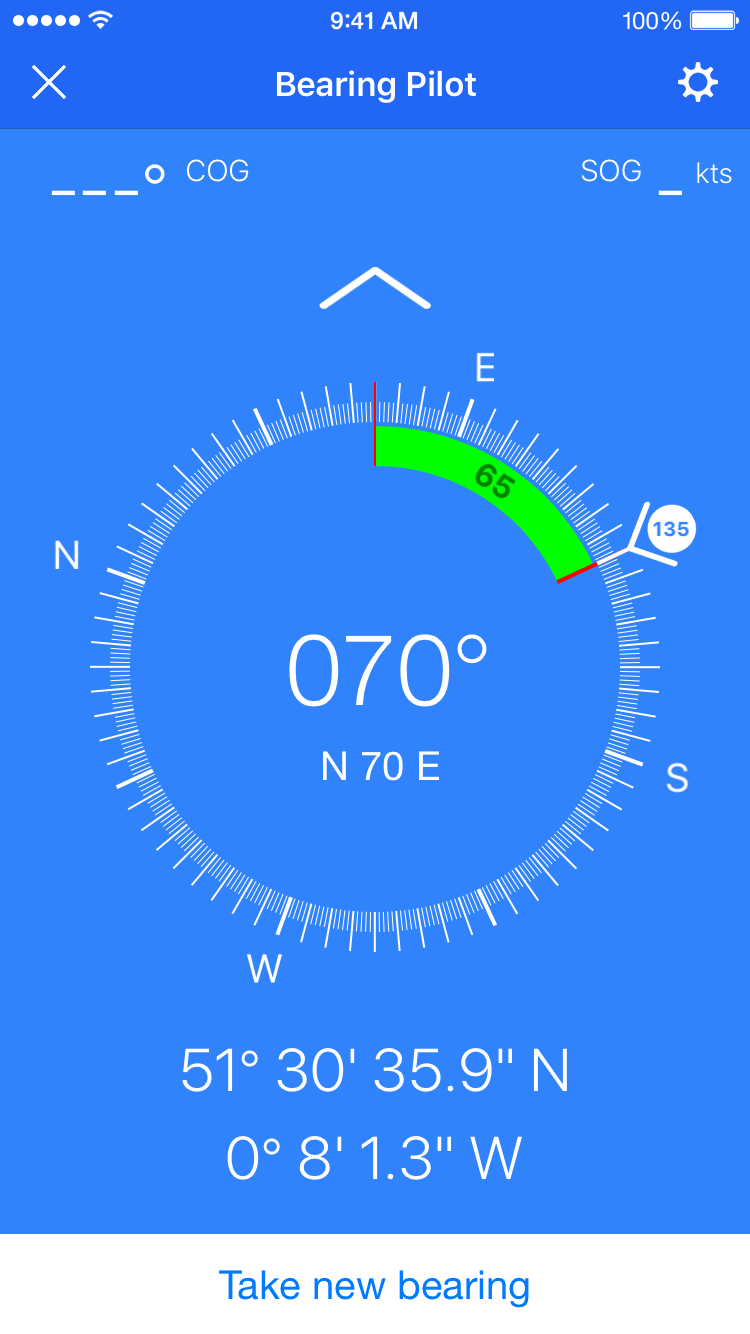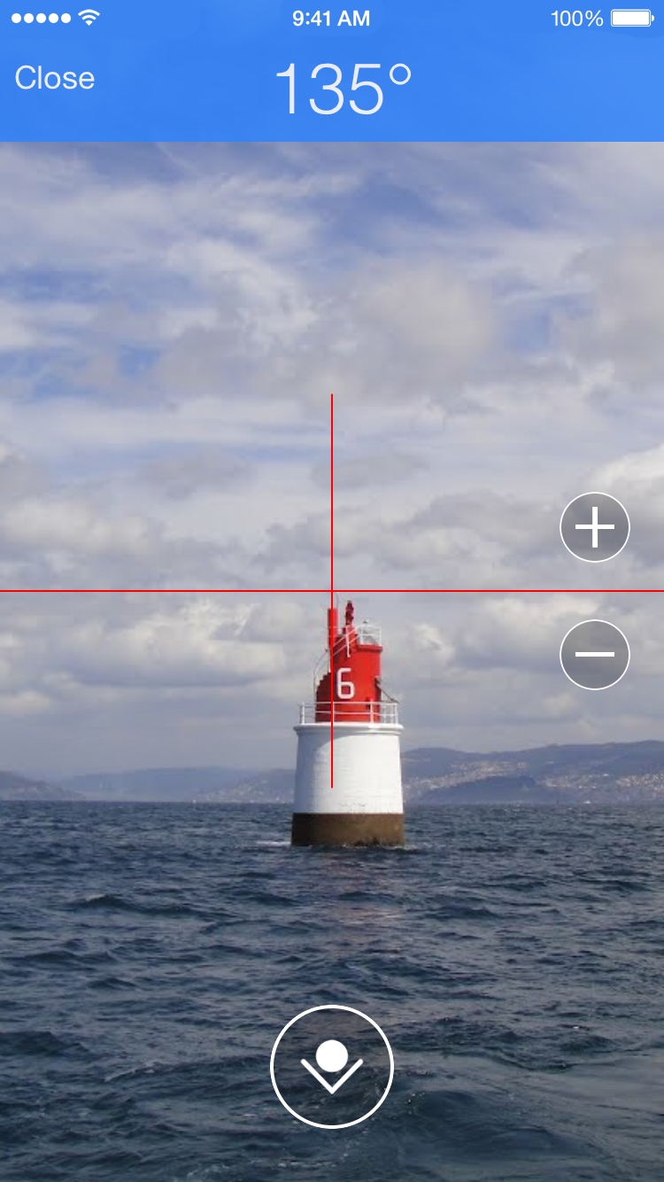 Thanks to the gyroscope of your device, you can always see the bearing or set the course