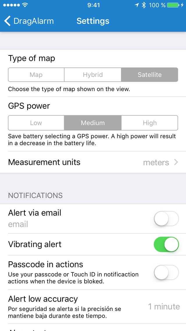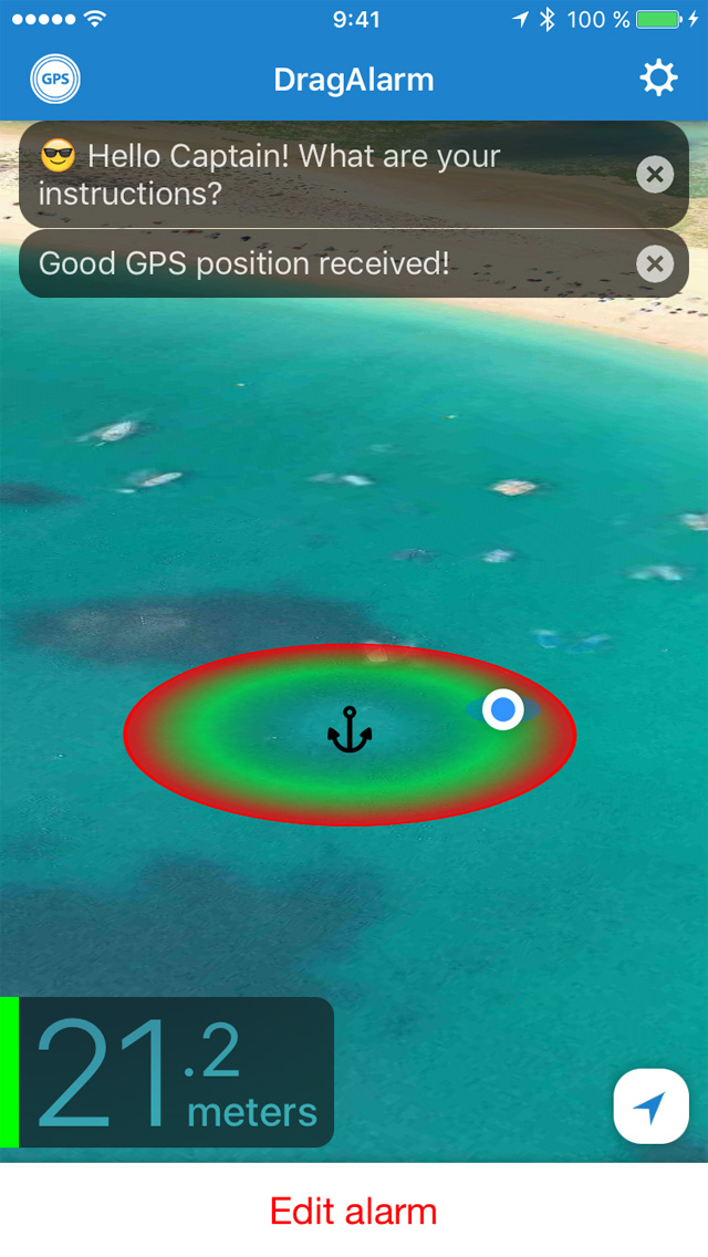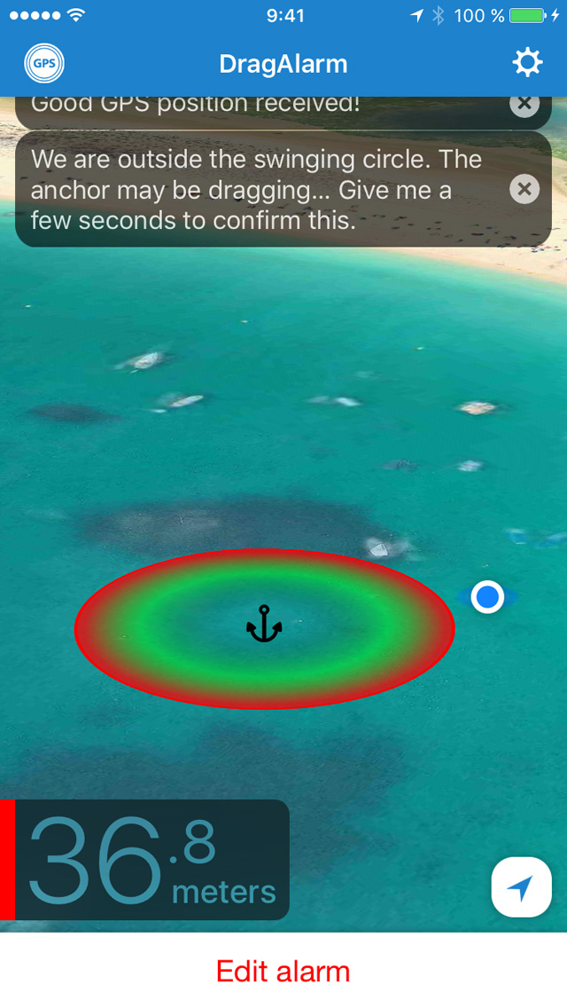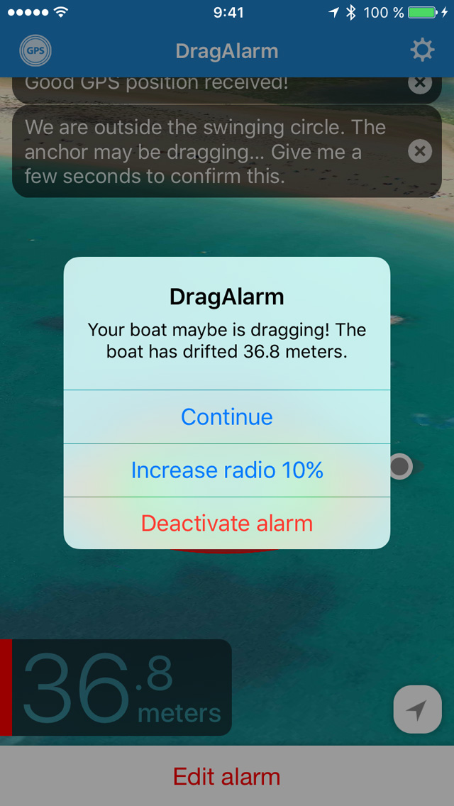 Be careful if your iPhone is in silent mode. The app uses the iPhone's GPS if you are navigating on a ship of great length, consequently the app understands that your boat is dragging. The app is conceived and designed for smaller boats without electronic systems.